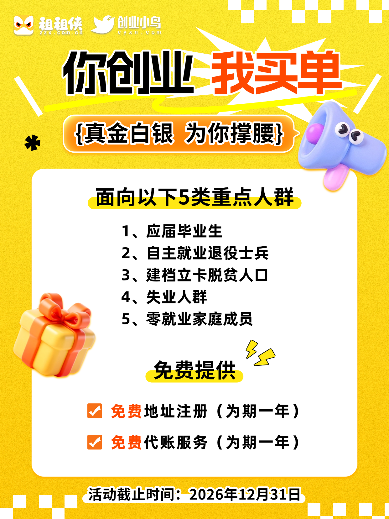 地址网母公司租租侠2026年推出【你创业,我买单】创业扶持活动: